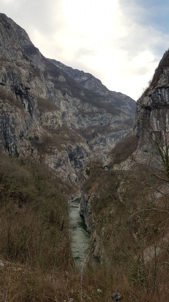 Die nächste Übernachtung war in Podgorica und zu unserem Erstaunen wurden wir auf dem Stellplatz mit einem „Ja Grüeziwohl“ begrüsst! Der Eigentümer hatte liechtensteinische Wurzeln und sprach perfekt Deutsch. Der angekündigte Regen liess nicht lange auf sich warten und leider sah die Wetterprognose für die kommenden Tage nicht besser aus. Am nächsten Morgen liessen wir es uns aber nicht nehmen zu den Niagara-Fällen bei Podgorica zu fahren. Diese Wasserfälle lassen sich allerdings nicht mit den Niagara-Fällen von Nordamerika vergleichen. Beeindruckend ist, dass sich diese Schlucht mit den Wasserfällen in mitten eines flachen Weinanbaugebiets am Stadtrand befindet und von Weitem praktisch unsichtbar ist.