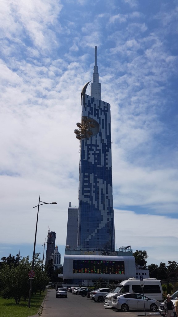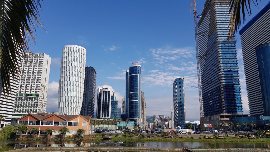Auf dem Weg an die türkisch-georgische Grenze stauten sich die LKWs auf beiden Seiten über mehrere Kilometer. Auf unser Nachfragen beim einheimischen Restaurantbesitzer, erklärt er uns, dass dies mit benötigten Zoll-Dokumenten zusammenhängt. Glücklicherweise ist unser Frosch ein Wohnmobil und kein LKW und so konnten wir ohne Stau an die Grenze fahren. Am ersten Schalter wurde uns mitgeteilt, dass für den Grenzübertritt nur der Fahrer im Fahrzeug verbleiben darf. Manuela machte sich somit zu Fuss über die Grenze und Stefan kämpfte mit dem Frosch um jeden Meter gegen die ungeduldigen und sich vordrängenden LKWs. Der Grenzübertritt verlief bei beiden problemlos und wir freuten uns auf das neue Land Georgien. Georgien hat rund 4 Millionen Einwohner, ist nur wenig grösser als die Schweiz und hat eine eigene Sprache sowie Schrift. Wenige Kilometer nach der Grenze liegt die Stadt Batumi, in der wir die erste Übernachtung einplanten. Für umgerechnet 3 Franken kann man auf einem zentral gelegenen und bewachten Parkplatz stehen und schlafen und zu Fuss die Stadt erkunden. Nebst organisatorischen Dingen (neue SIM-Karte besorgen, Wäscherei aufsuchen etc.) genossen wir auch die schöne Promenade und das Leben in der Stadt. In Batumi fanden wir sowohl hochmoderne Gebäude als auch heruntergekommene Häuser aus der Sowjetzeit. Nach nur wenigen Stunden in Georgien spürten wir bereits einen grossen Unterschied zur Türkei. Die Verkehrsteilnehmer sind ungeduldiger und durch einen rücksichtslosen Fahrstil geprägt, auch die Strassenqualität nimmt rapide nach der Grenze ab. Positiv fielen uns die vielseitigen Freizeitmöglichkeiten, die vielen Bars und Restaurants sowie das grosse kulinarische Angebot auf. Was ein paar wenige Kilometer und eine Landesgrenze ausmachen können!