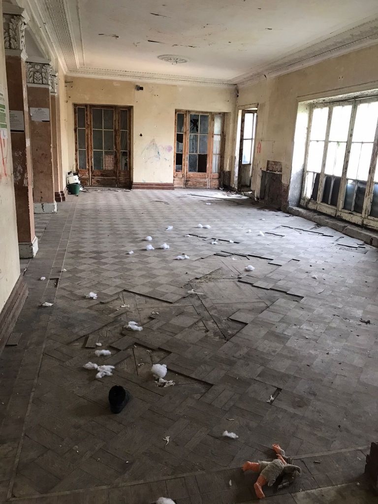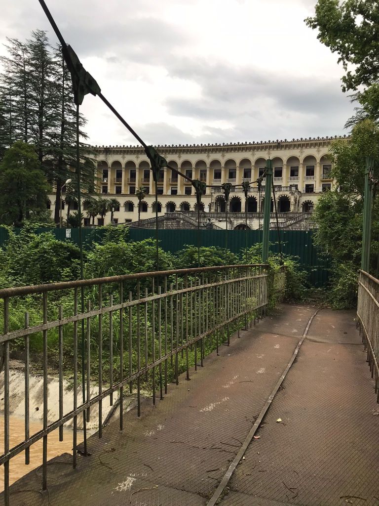In Georgien gibt es viele verlassene und zerfallene Gebäude. Diese sind nicht nur bei Überlandfahrten zu sehen, sondern teilweise auch direkt in einem touristischen Ort. Unsere Reise ging mit „Kuhslalom“ weiter nach Zqaltubo. Kuhslalom deshalb, weil in Georgien die Kühe, Schweine etc. nicht eingezäunt sind und sich überall, auch auf der Strasse aufhalten. Das Tempo auf Landstrassen kann daher meist nicht gehalten werden, da dauernd für Kühe etc. gebremst oder einem Schlagloch ausgewichen werden muss. Zqaltubo war einst einer der bedeutendsten Kurorte der Sowjetunion und verfügt über diverse Bäder mit Thermalwasser. Seit dem Zusammenbruch der Sowjetunion verfiel dieser Ort und die imposanten Gebäude und Hotels zunehmend. Es gibt einen grossen Park mitten in der Ortschaft. In diesem Park gibt es einige noch aktive Bäder sowie auch diverse verlassene und langsam in sich zusammenfallende Gebäude. Um den Park herum führt eine Ringstrasse an welcher viele Hotels liegen. Einige dieser Hotels wurden neu gebaut, andere sind aus früheren Zeiten noch in Betrieb und wiederum andere fallen in sich zusammen. Wir entschieden uns spontan für eine Hydromassage im historischen Stalinbad. Das Badehaus verfügt über eine imposante Front sowie Eingangshalle. Die anschliessenden langen Gänge, an welchen sich unzählige Einzelkabinen befinden, erinnern noch an die Sowjetzeit.