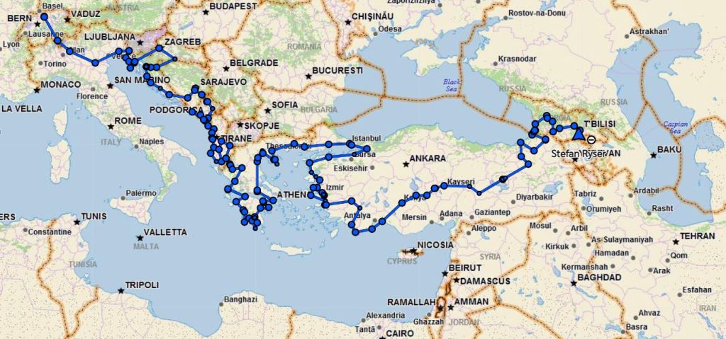 Unsere bisherige Reiseroute.