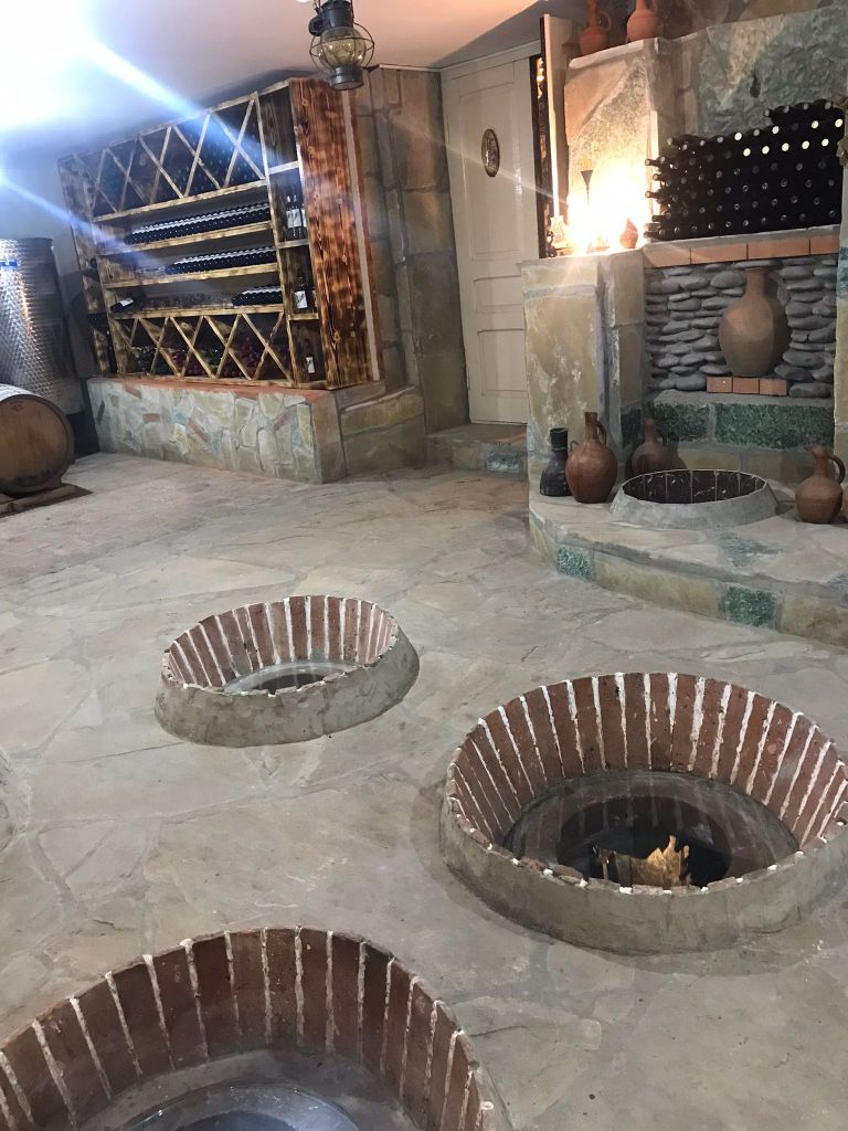 Seit über 8000 Jahren wird in Georgien Wein angebaut, denn die geologischen und klimatischen Bedingungen sind optimal. Heutzutage führen touristische Weinrouten praktisch durch das ganze Land und es gibt diverse Weingüter, die besichtigt werden können. Wir liessen es uns nicht nehmen und fuhren ein Weingut an, das nebst Degustationen, ein Abendessen mit georgischen Spezialitäten und die Möglichkeit der Übernachtung mit dem Camper vor Ort anbot. Der Besitzer erläuterte uns auf dem Weingut die traditionelle Art der Wein- sowie der Weinbrandherstellung. Das anschliessende Abendessen war begleitet von diversen eigenen Weinen und als Absackerl gabs den georgischen Schnaps Chacha sowie Eigenkreationen von Vodka.