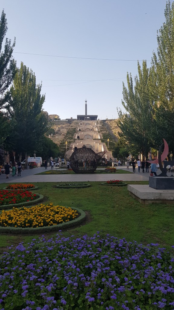 Am Folgetag stand die Hauptstadt Yerevan auf unserem Programm und wir fuhren via Etschmiadsin dorthin, um auf dem Weg die UNESCO-Kathedrale zu besuchen. In Yerevan fanden wir wiederum einen praktischen und zentralen Stellplatz, von dem wir zu Fuss ins Zentrum gelangen konnten. Als wir auf dem Platz der Republik ankamen und uns über weitere Sightseeingmöglichkeiten erkundigten, stellten wir fest, dass eine Free Walking Tour in 15 Minuten startete. Wir schlossen uns dieser Tour spontan an und erfuhren während vier Stunden viel Interessantes über die Hauptstadt, über Armenien sowie auch über das Leben der einheimischen Bevölkerung. Die Einheimischen nennen ihr Land nicht Armenien sondern Hajastan (ist auch auf ihrem Pass so vermerkt). Weiter besteht zwischen Armenien und Russland ein Schutzvertrag, in dem Russland militärischen Schutz für Armenien gewährleistet. Zudem gehört für armenische Schüler die Sprache Russisch sowie das Schachspiel zum Grundlehrplan. Als wir mit unserem Guide an der Oper von Yerevan vorbei liefen, wiess er uns darauf hin, dass die Tickets für die Oper sehr preiswert seien. Wir kauften für den Folgetag Tickets zu rund CHF 11.- pro Person und waren von der dreistündigen Ballettvorstellung von Spartakus begeistert. Spartakus gilt als eines der erfolgreichsten sowjetischen Ballette, das 1956 uraufgeführt wurde. Am letzten Tag besuchten wir das Genozidmuseum von Yerevan, in dem der Mord und die Vertreibung der Armenier seitens der Türkei dokumentiert ist.