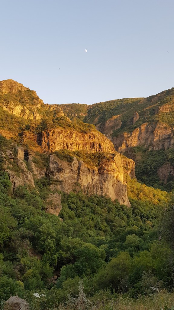 Auf Armeniens Strassen ging es dann begleitet von abwechslungsreicher Landschaft Richtung Süden in die Weinstadt Areni. Der Beifahrer genoss eine kostenfreie Weindegustation und kaufte eine Flasche Rotwein der Areni Traube, die in dieser Region wächst. Für die kommenden Tage waren in Areni Temperaturen von rund 40 Grad vorhergesagt, daher suchten wir uns einen kühlen Stellplatz.