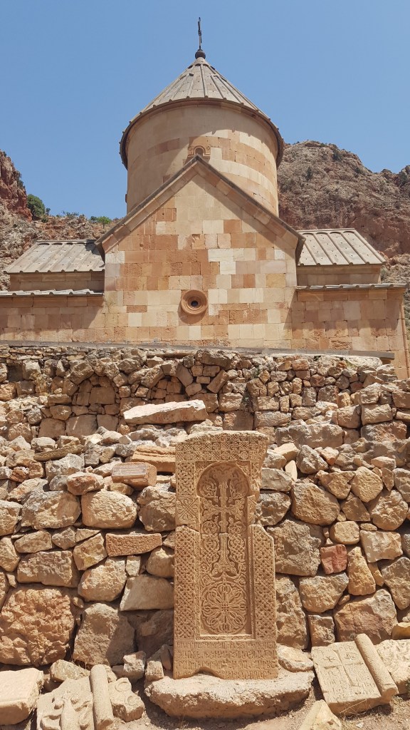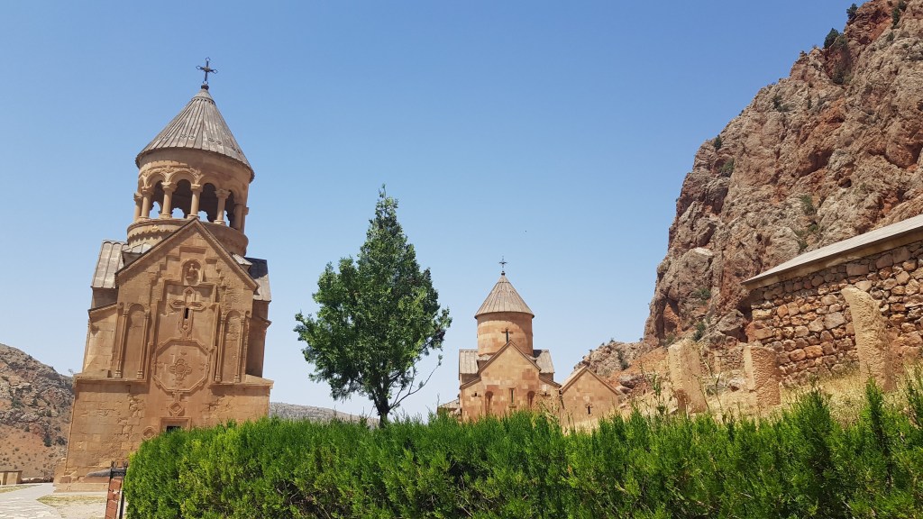 Unser Stellplatz lag in der Nähe des Noravank-Klosters, das wir ebenfalls besuchen wollten und das auf der UNESCO-Weltkulturerbeliste steht. Das Kloster wurde im 13. Jahrhundert erbaut und bietet wunderbaren Blick auf die Schlucht und die hohen Felswände. Das Kloster war früher ein Bischofssitz und galt entsprechend als wichtiges religiöses und später kulturelles Zentrum. Die Hauptattraktion ist die zweistöckige Kirche Surb Astvatsatsin.