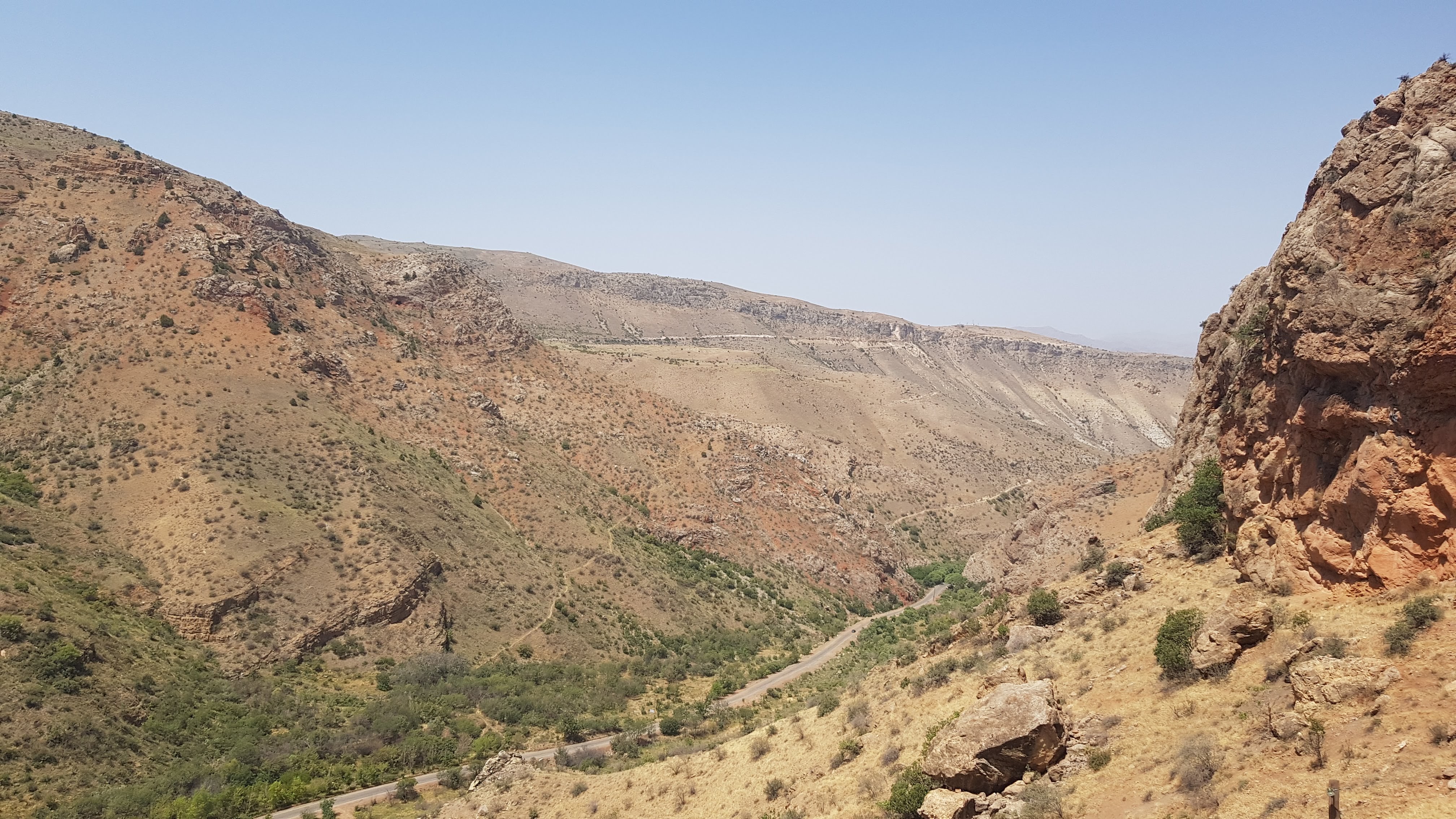 Die Strassenqualität in Armenien lässt generell zu wünschen übrig und als Fahrer muss man immer auf plötzlich auftretende Schlaglöcher gefasst sein. Einen Teil der Strecke von Tatev an die iranische Grenze übertraf aber nochmals alles. Es führte sogar soweit, dass ein LKW drohte von der Strasse zu rutschen, weil der Belag in einer Serpentine nicht mehr vorhanden war und der staubige, sandige Untergrund dem Gefährt keinen Halt bot. Hut ab vor den Berufschauffeuren, die diese Strecke regelmässig mit ihren Lastwagen fahren müssen. Unser letzter Halt vor dem Grenzübertritt war Meghri. Dort fanden noch die letzten Vorbereitungen für den Grenzübertritt statt – so mussten noch die letzten alkoholischen Getränke getrunken und das letzte Schweinefleisch gegessen werden und alle nötigen Dokumente bereitgelegt werden. Iran ist das erste Land, in dem wir unser Carnet de Passage benötigen – entsprechend lasen wir nochmals wie das Vorgehen ist und an welchem Ort im Formular die Stempel gemacht werden müssen. Am nächsten Tag ging es nach zwei Wochen in Armenien zusammen mit dem deutschen Pärchen Richtung iranische Grenze – die Frauen trugen weite Kleider und Kopftuch und die Männer lange Hosen.