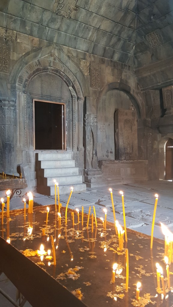 Nach zwei Tagen in der Hauptstadt zog es uns zu den nahegelegenen Sehenswürdigkeiten Geghard Kloster und Stone Symphony. Das Kloster wurde im 4. Jahrhundert gegründet und ist UNESCO Weltkulturerbe. Die Stone Symphony ist eine Gesteinsformation, die aussieht wie eine Orgel.