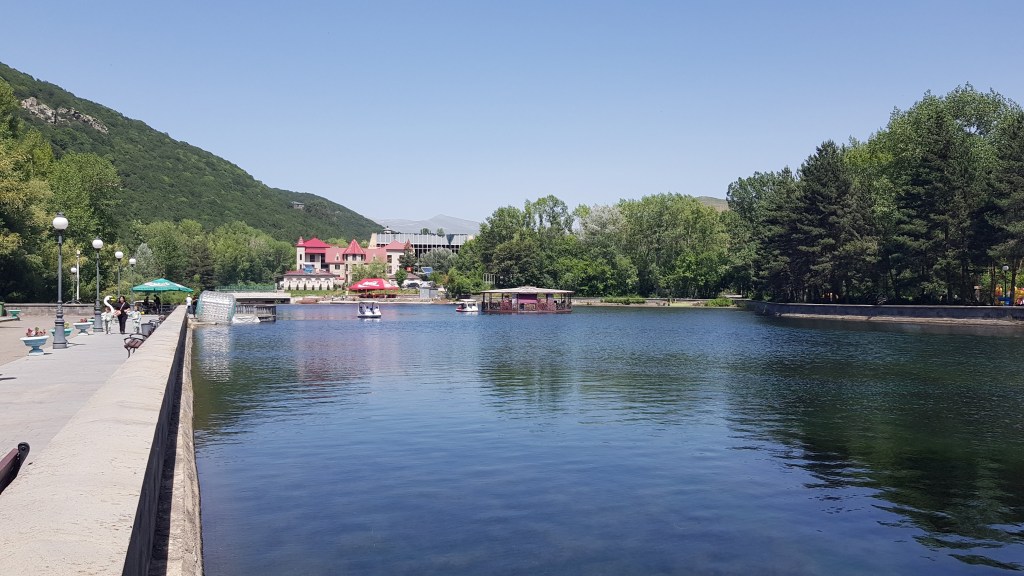 Unsere Reise führte als nächstes nach Jermuk, einem Ort auf rund 2’000 Meter über Meer, welcher als Kurort bekannt ist und in dem Mineralwasser abgefüllt wird. Der Ort selbst ist ziemlich überschaubar und die Sehenswürdigkeiten Mineralwassergalerie, der See sowie der Wasserfall liegen alle nahe beieinander. Da in den kommenden Ländern der Gebrauch der Drohne nicht mehr erlaubt ist, schickten wir sie in einem Paket in die Heimat. Die freundlichen Mitarbeiterinnen der Haypost halfen uns bei diesem Vorhaben. Mittels Übersetzungsapp gelang es schliesslich unser Paket in die Schweiz zu verschicken.