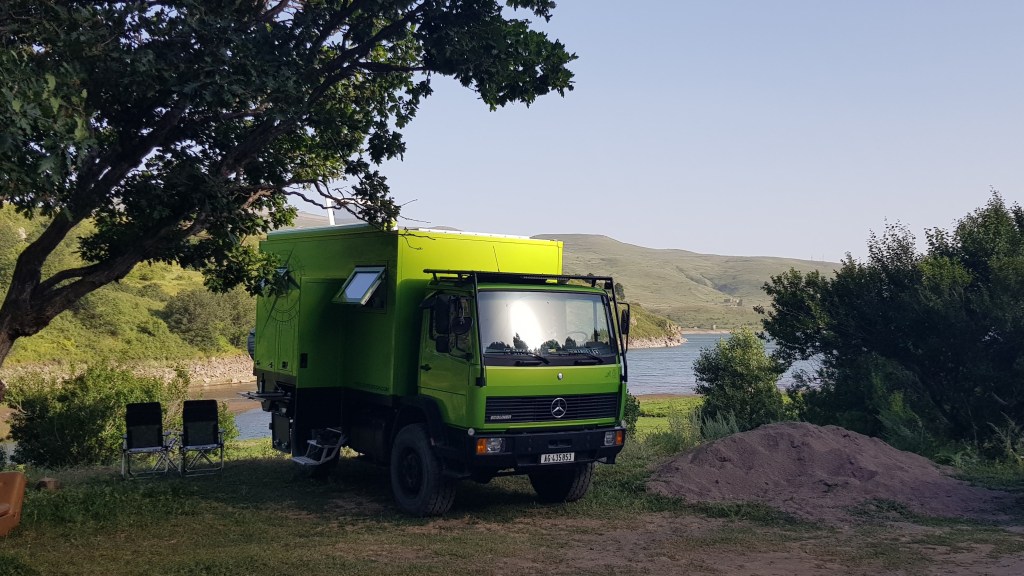 Unser erster Stopp war Dilijan – auch little Switzerland genannt. Der in den Wäldern gelegene Kurort auf einer Höhe von 1’500 Meter über Meer gilt in Armenien als beliebtes Ausflugs- und Ferienziel und überzeugt durch die wunderschöne Natur und vielseitigen Wandermöglichkeiten. So schnallten wir uns am nächsten Tag die Wanderschuhe an und unternahmen zwei Wanderungen, die uns von den kompetenten und freundlichen Mitarbeitern des Tourismusbüros empfohlen wurden. Am Praz See war aufgrund des Wochentags (Sonntag) sehr viel los. Man kann mit den Ziplines über den kleinen See fliegen oder mit gemieteten Pedalos einige Runden drehen. Als wir von der Wanderung zurück zum Frosch kamen, fanden wir eine Notiz unter unserem Scheibenwischer. Ein Schweizer, welcher mit seiner Familie in Armenien lebt, hat uns zu sich eingeladen. Was für eine Überraschung!