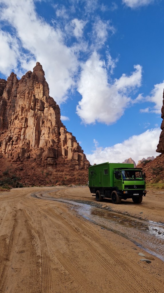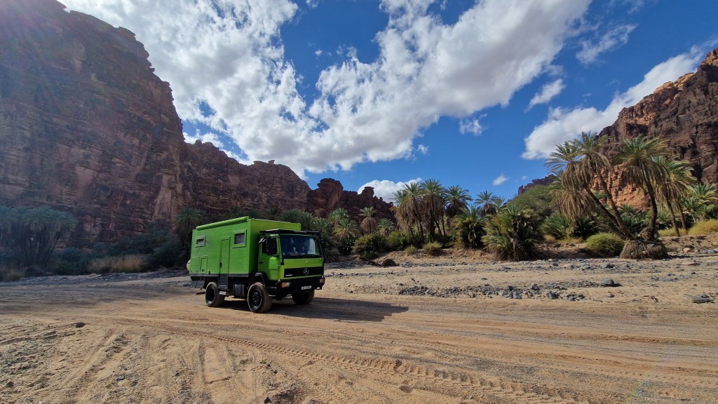 Als nächste Destination war Al Ula geplant und wir freuten uns sehr, die vielseitigen Sehenswürdigkeiten besuchen zu können. Auf dem Weg dorthin trafen wir unseren Omanischen Freund und offerierten der Motorradreisegruppe aus dem Oman Verpflegung aus dem Frosch-Foodtruck.