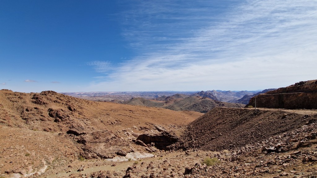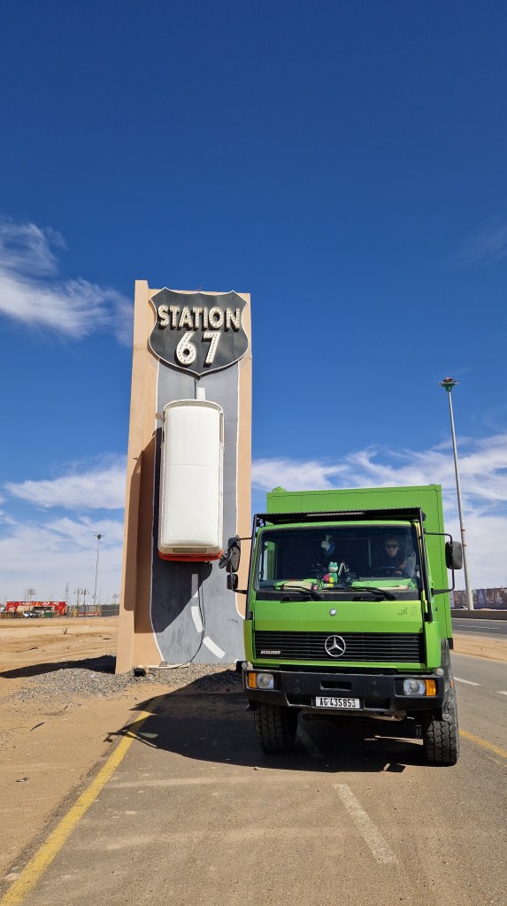 Der Jabal Lawz ist knapp 2600 Meter hoch und liegt nur rund 50km vom Golf von Akaba entfernt. Von anderen Reisenden haben wir erfahren, dass an diesem Berg im Jahre 2029 die asiatischen Winterspiele ausgetragen werden sollen und aus diesem Grund ein Skigebiet gebaut würde. Wir nahmen die steile und kurvenreiche Strecke unter die Räder. Leider wurde uns vom freundlichen Wachposten mitgeteilt, dass aufgrund eines Projekts die Zufahrt nur für Berechtigte erlaubt sei. Unsere Recherchen haben ergeben, dass das Projekt Trojena heisst und ebenfalls zum Grossprojekt NEOM gehört. Die Saudis errichten ein Skigebiet, dessen Kunstschnee zu 100% aus erneuerbaren Energien hergestellt werden soll. Für uns immer noch surreal, dass zukünftig Skiferien in Saudi Arabien möglich sein sollen.