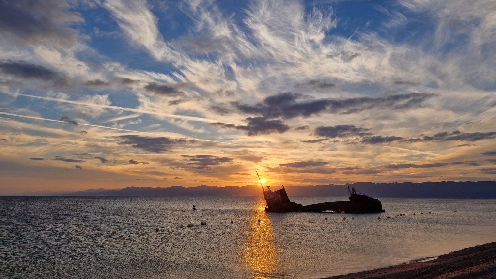 Unser Ziel in dieser Region war aber das Georgios Schiffswrack, das 1978 gesunken war. Direkt am Strand war unser Stellplatz mit Sicht auf das Wrack.