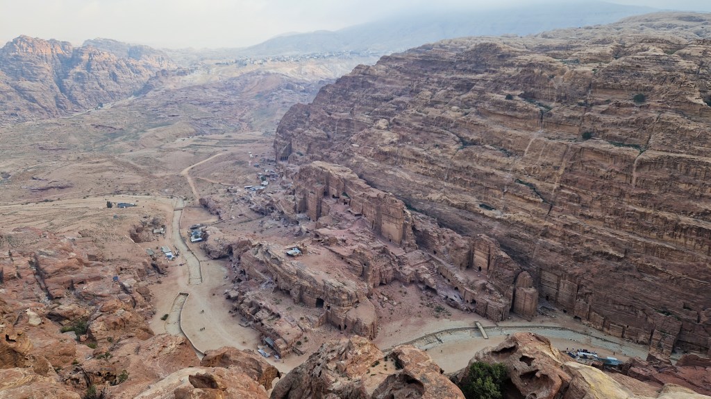 Unser nächstes Ziel war Petra. Die Stadt Petra war die Hauptstadt der Nabatäer und hatte ihre Blütezeit um Christi Geburt, bis schliesslich ein Erdbeben im 4. Jahrhundert nach Christus einen Grossteil der Stadt zerstörte. Petra lag auf der Handelsroute für Weihrauch, Myrrhe und anderen Gewürzen und verfügt sowohl über diverse riesige Felsengräber, über ein Theater, verschiedene Tempel, Säulenstrassen wie auch über eine Kirche, ein Kloster und einen Opferplatz auf den Hügeln sowie über das bekannteste Bauwerk, das Schatzhaus. Die Fassade des Schatzhauses, welches im 1. Jahrhundert v. Chr. erbaut wurde, ist fast 40 Meter hoch und reich an Dekorationen. Um zu diesen Bauwerken zu gelangen, muss zunächst eine mehr als ein Kilometer lange natürliche Schlucht passiert werden, an dessen Wänden die Infrastruktur für die Wasserführung sowie diverse Relikte bestaunt werden können. Diese Schlucht, genannt Siq, wie auch das Schatzhaus waren Schauplätze des Filmes „Indiana Jones und der letzte Kreuzzug“.
