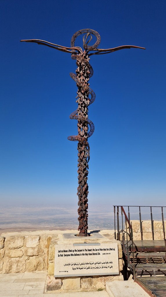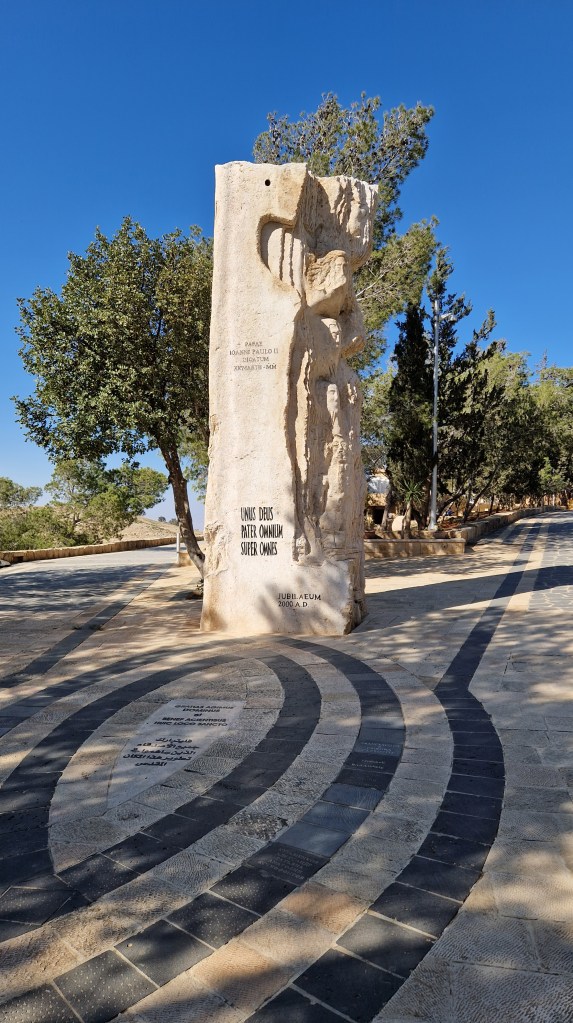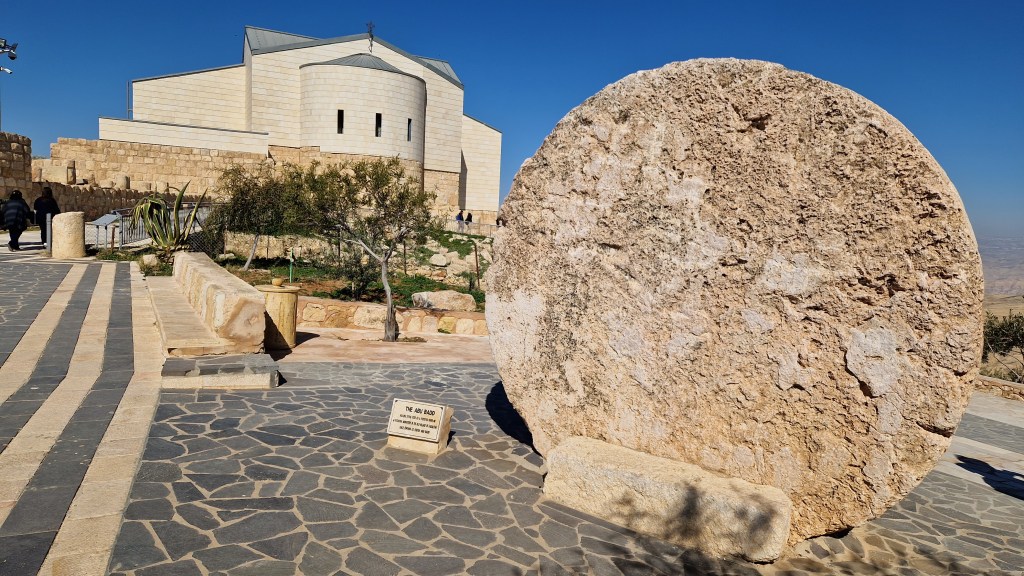Auf dem Weg in die Hauptstadt machten wir Halt am Berg Nebo. Dieser rund 800 Meter hohe Berg bietet Sicht auf das Jordantal, Israel und Palästina und ist eine bedeutende religiöse Stätte. Der Berg Nebo wird im alten Testament im Zusammenhang mit Moses erwähnt. Von diesem Berg aus habe Moses das gelobte Land gesehen, musste aber sterben bevor er es betreten konnte.
