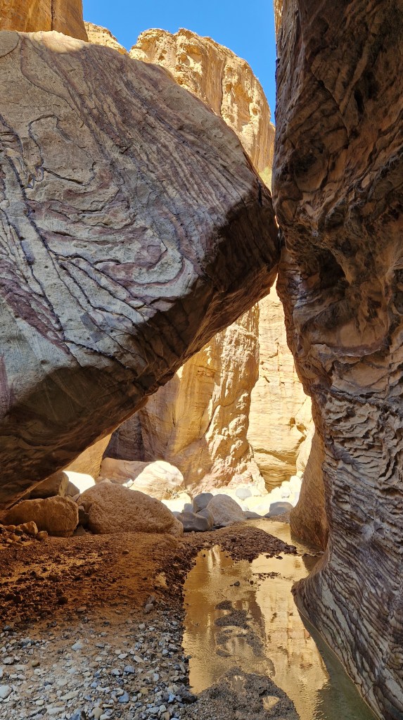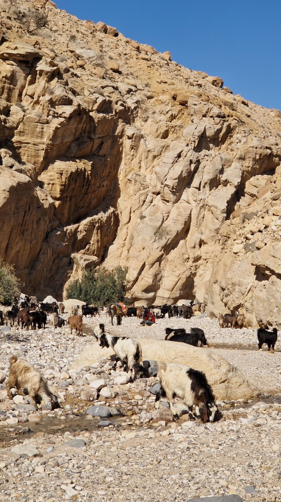 Von anderen Reisenden wurde uns das Wadi Ghuwair empfohlen, welches tolle Möglichkeiten für Wanderungen bietet. Während unserer Wanderung durch die Schlucht begegneten wir einem Ziegenhirten und fanden eindrucksvolle Felsstrukturen vor.