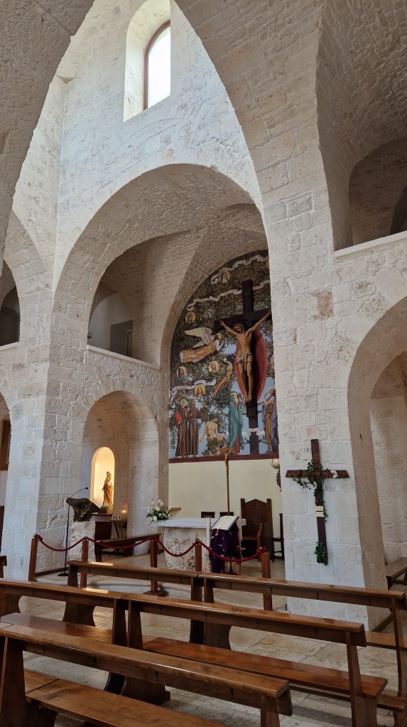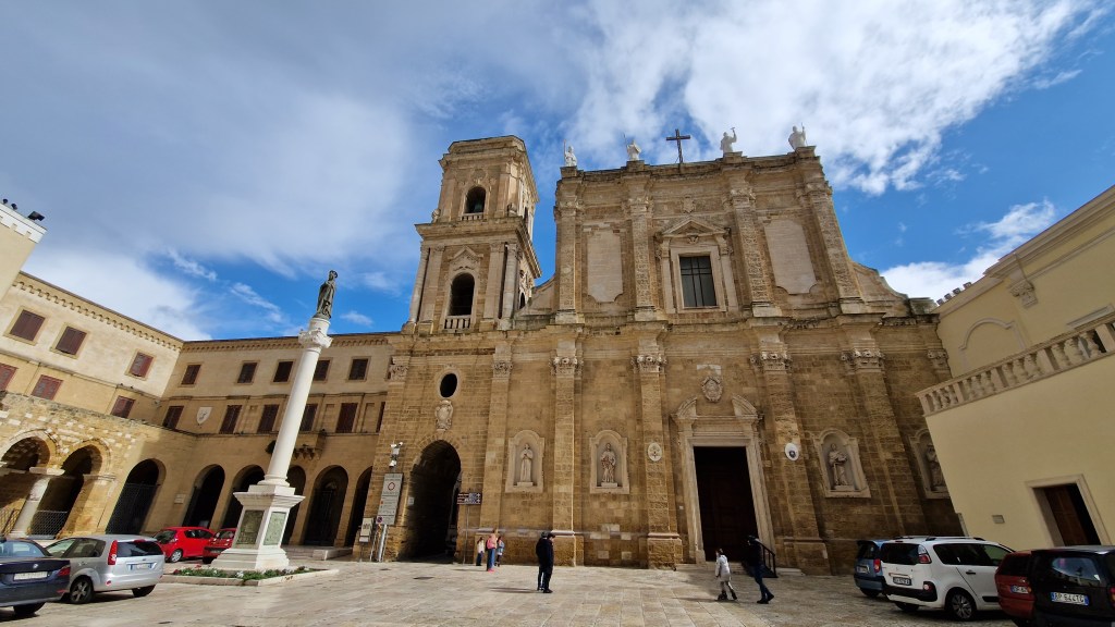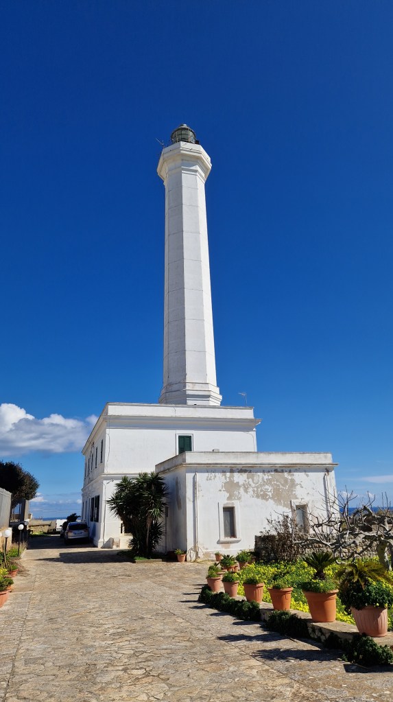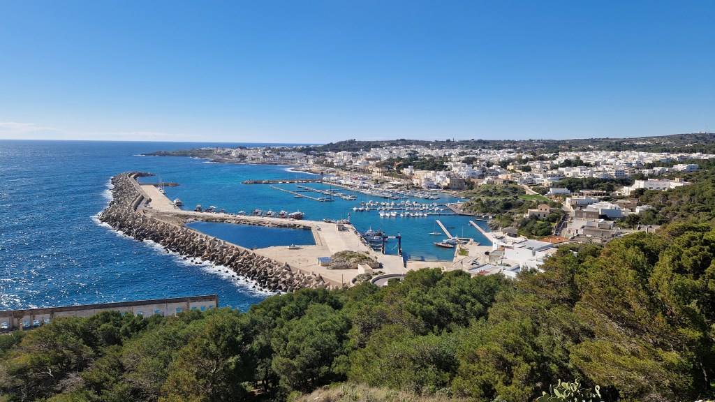 Weiter führte unser Weg an den südlichsten Punkt des italienischen Festlandes. Auf dem Weg nach Santa Maria de Leuca fuhren wir der wunderschönen Küste entlang, blickten in das tiefblaue Wasser des Meeres und sahen diverse Höhlen, die sich an der schroffen Küste gebildet hatten. In der kleinen Ortschaft liegt die Punta Ristola, das Kap, welches den südlichsten Punkt markiert. An dieser Stelle treffen das Ionische Meer sowie das Adriatische Meer aufeinander. Am östlichen Ende des Ortes kann man den grössten Aquädukt Europas anschauen – den Aquedotto pugliese, der grosse Teile Apuliens versorgt.