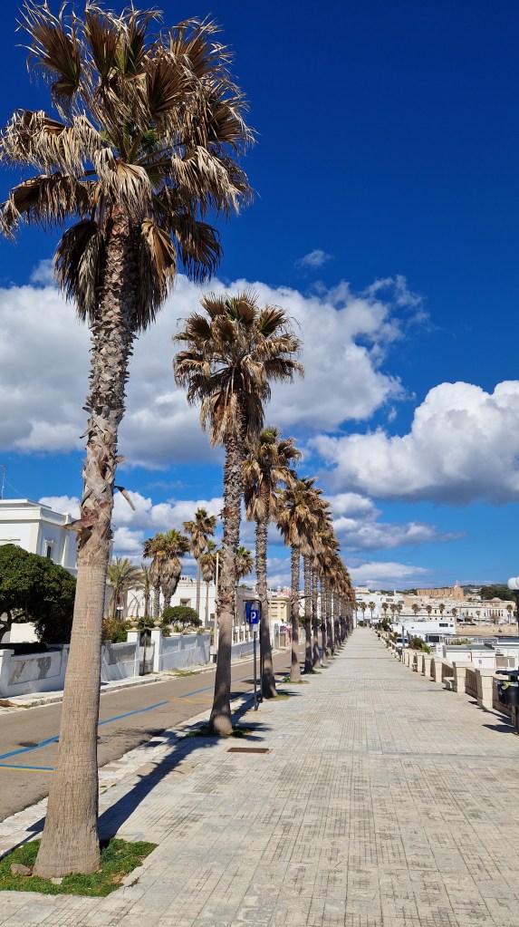 Anfang März sind wir via Griechenland mit der Fähre in Brindisi angekommen. Die Fährüberfahrt von Igoumenitsa nach Brindisi verlief ruhig und wir konnten den Tag auf der fast leeren Fähre mit spannenden Lektüren verbringen. Als wir abends in Brindisi ankamen, zog es uns fast magisch in die nächste echte italienische Pizzeria. Wir genossen das leckere Essen in der traditionellen Gaststätte, welche von Einheimischen bis auf den letzten Platz gefüllt war.